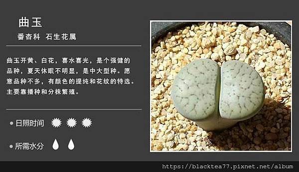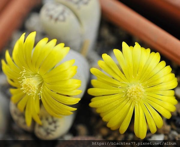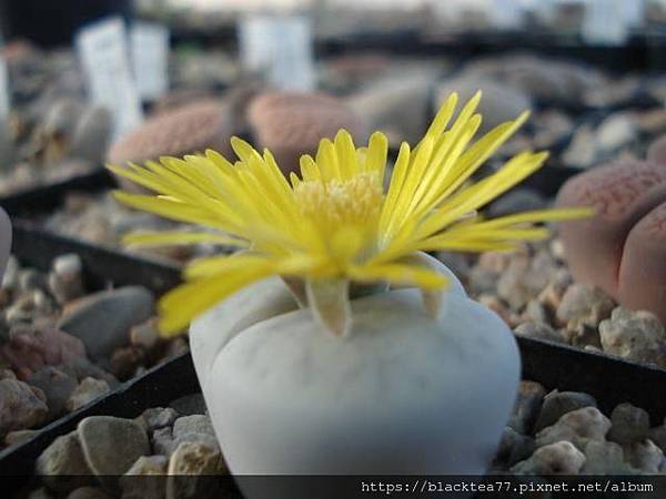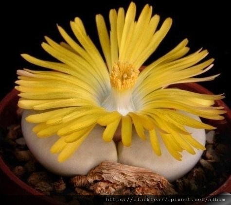原產非洲南部及西南地區,常見於岩床縫隙、石礫之中,被喻為「有生命的石頭」,但是花友們給它取了個更貼切的名字「石頭玉」。開花時刻,