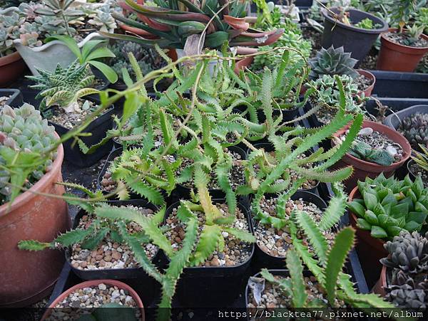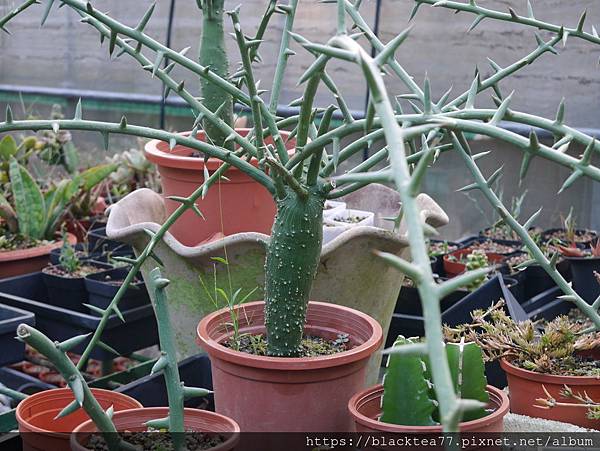 園中的飛龍大戟(塊根)購買,細細長長像青竹絲,頭上會長出一條條的葉子帶有刺