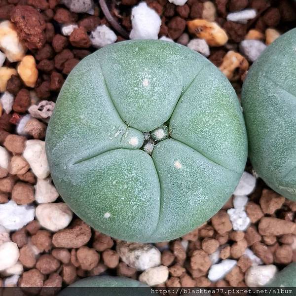 銀冠玉(學名:Lophophora fricii),俗稱無刺的仙人掌 原產於北美洲西部,外皮軟厚,內含水分,長著白色細毛越大越明顯。